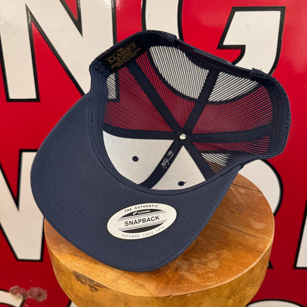 Authentic vintage patch expertly sewn onto a brand new Yupoong 6606 Snapback.