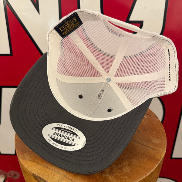Authentic vintage patch expertly sewn onto a brand new Yupoong 6606 Snapback.
