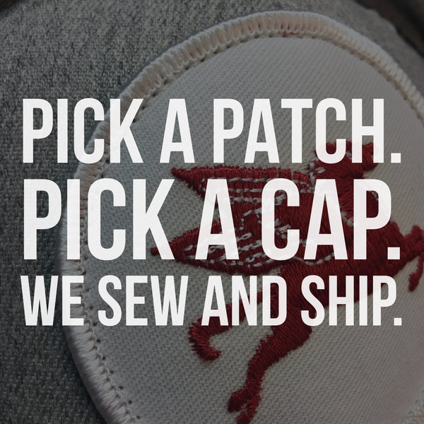 3) Check-out and pay. We then expertly sew your patch and cap together.