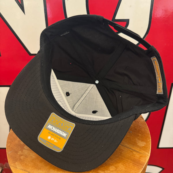 Authentic vintage patch expertly sewn onto a brand new Richardson 256 Black Snapback.