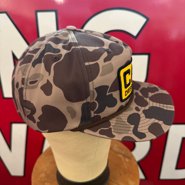 Authentic vintage patch expertly sewn onto a brand new Richardson 256 Bark Duck Camo/ Brown Snapback.
