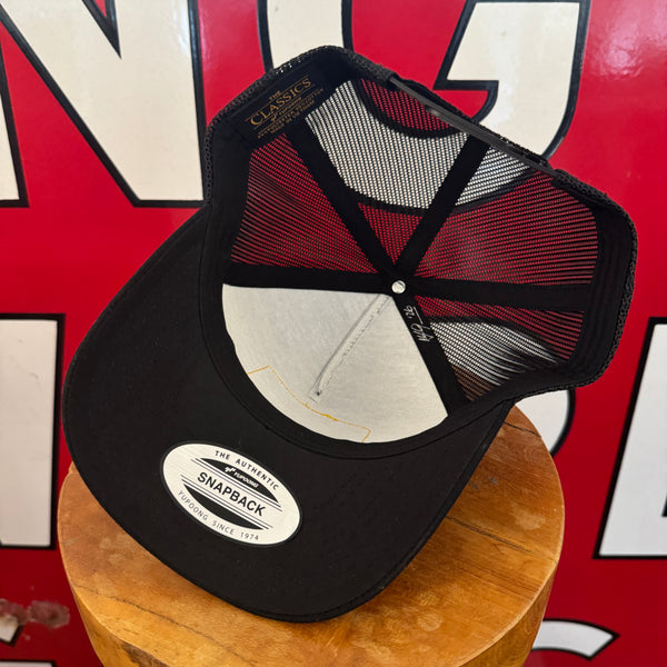 Authentic vintage patch expertly sewn onto a brand new Yupoong 6606 Black/White Snapback.