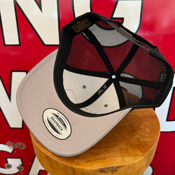 Authentic vintage patch expertly sewn onto a brand new Yupoong 6606 Snapback.