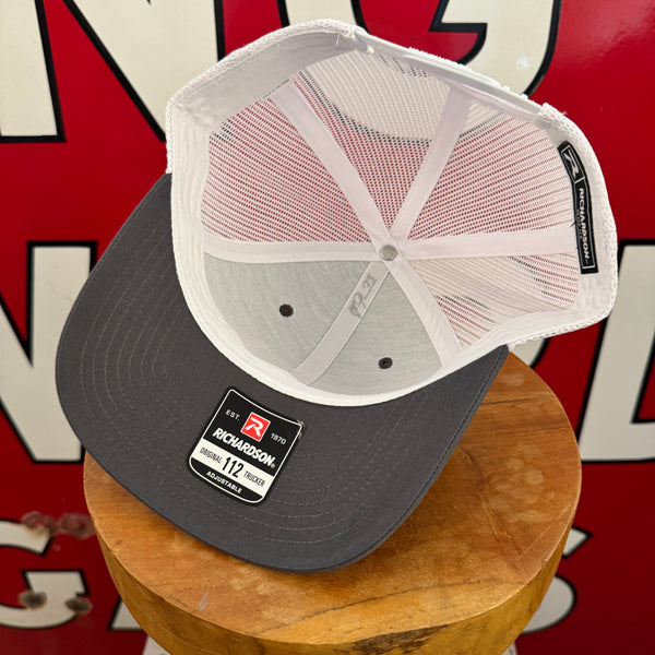 Authentic vintage patch expertly sewn onto a brand new Richardson 112 Gray/White Snapback.