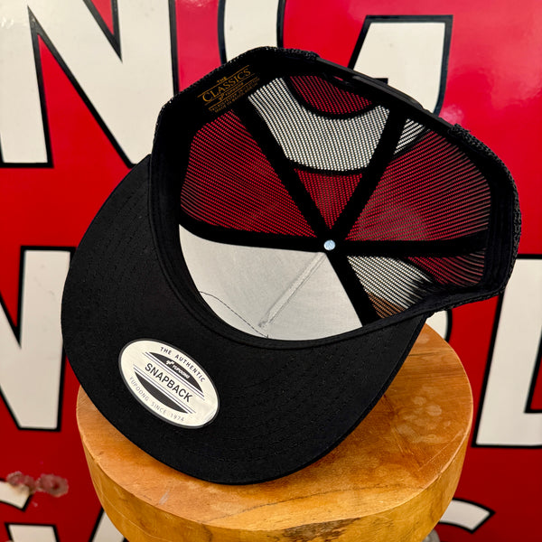 Vintage style patch expertly sewn onto a brand new Yupoong 6006 Snapback.